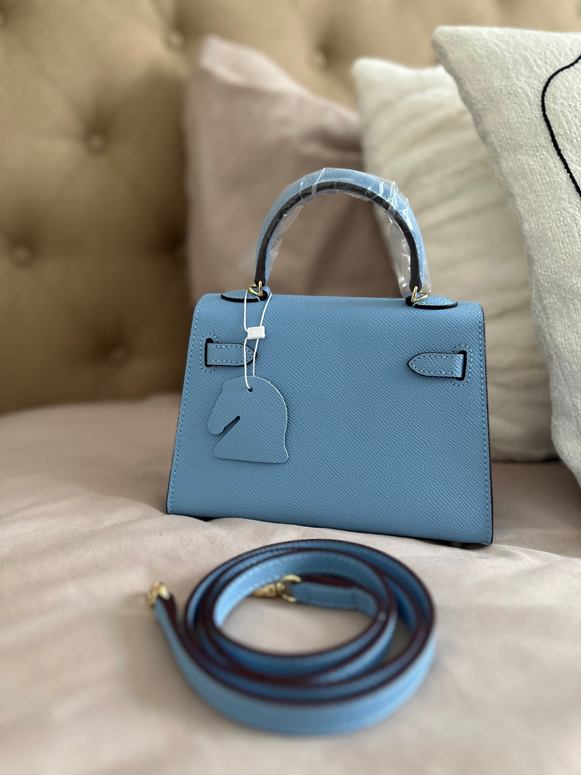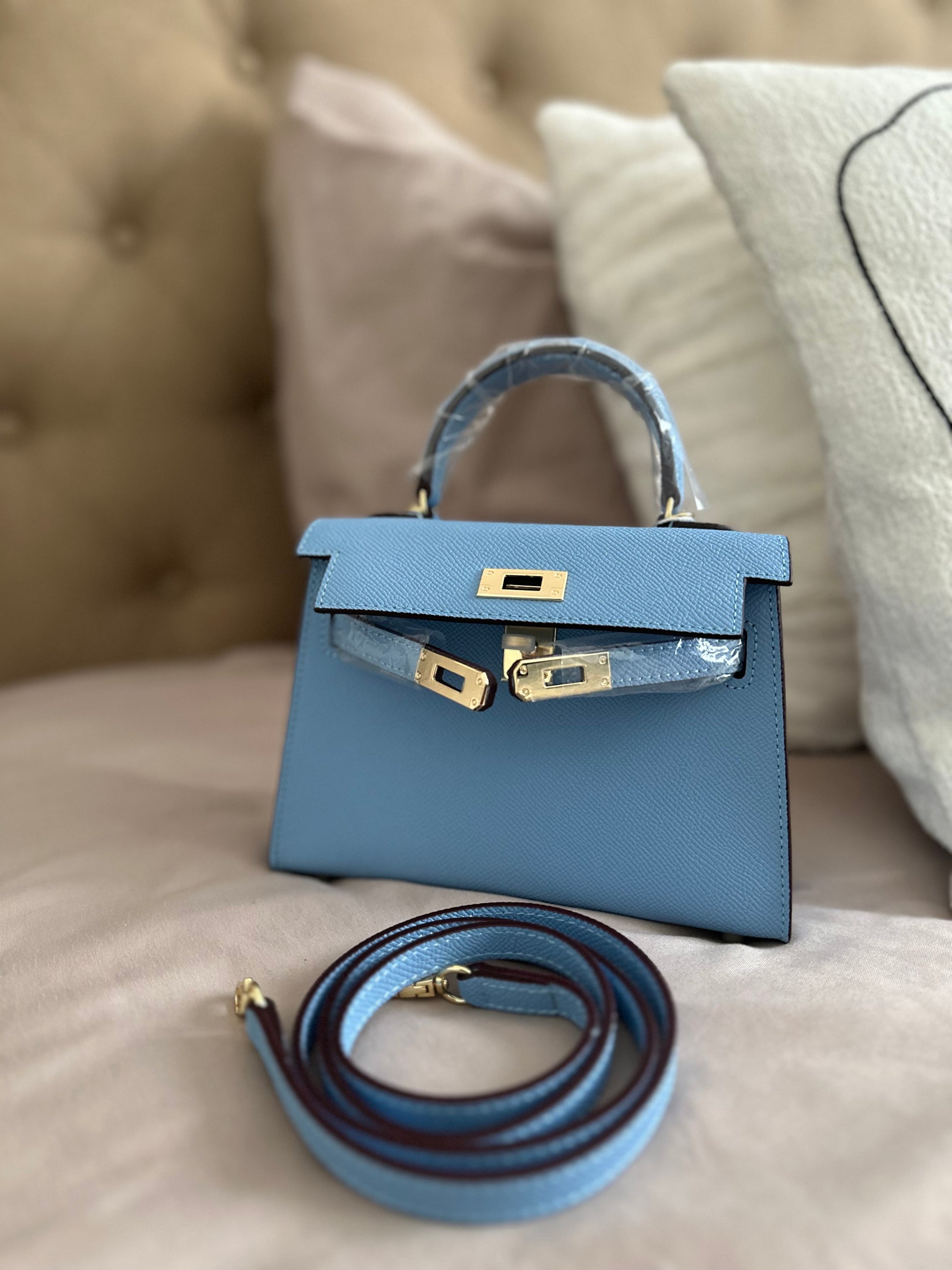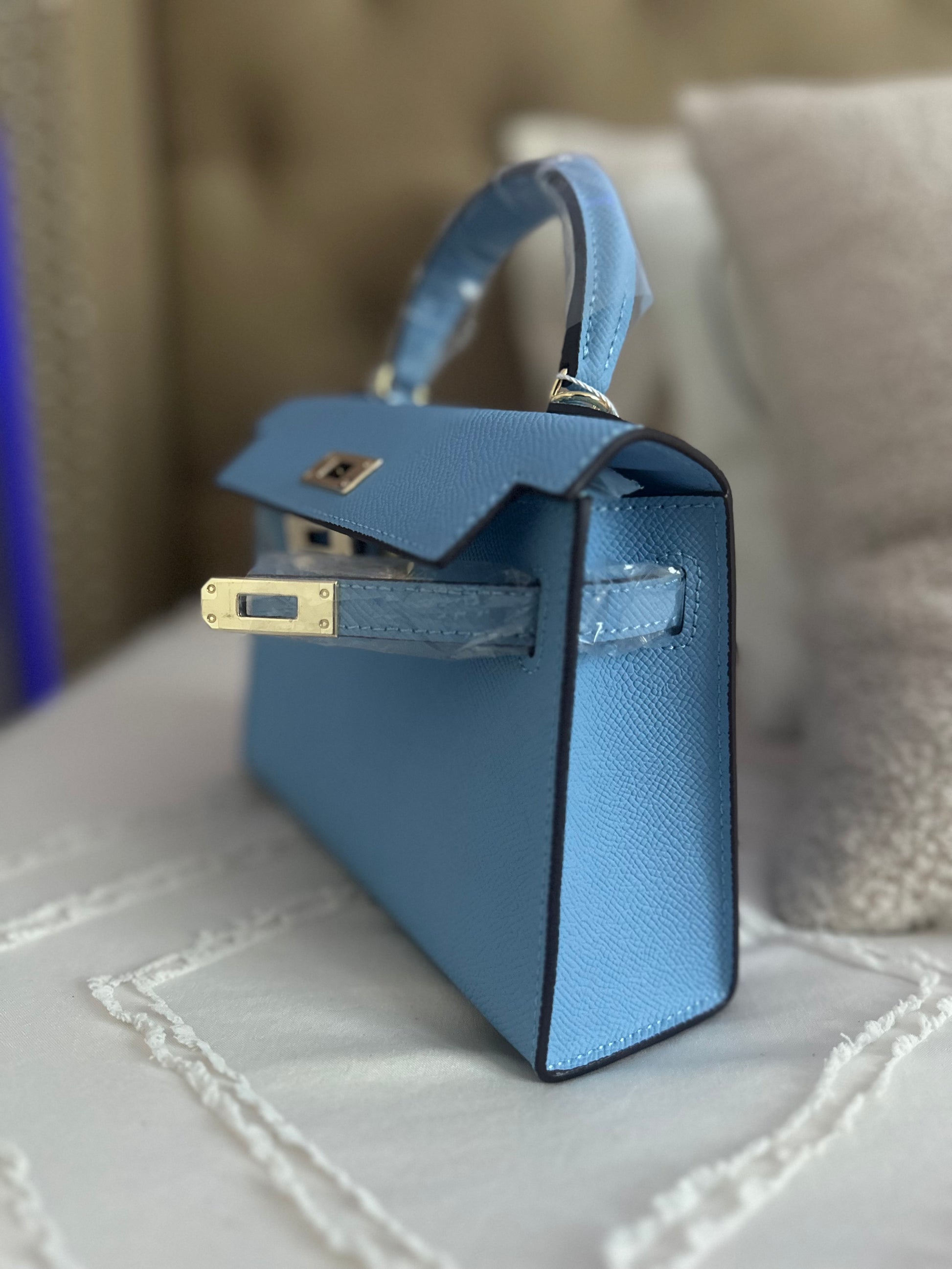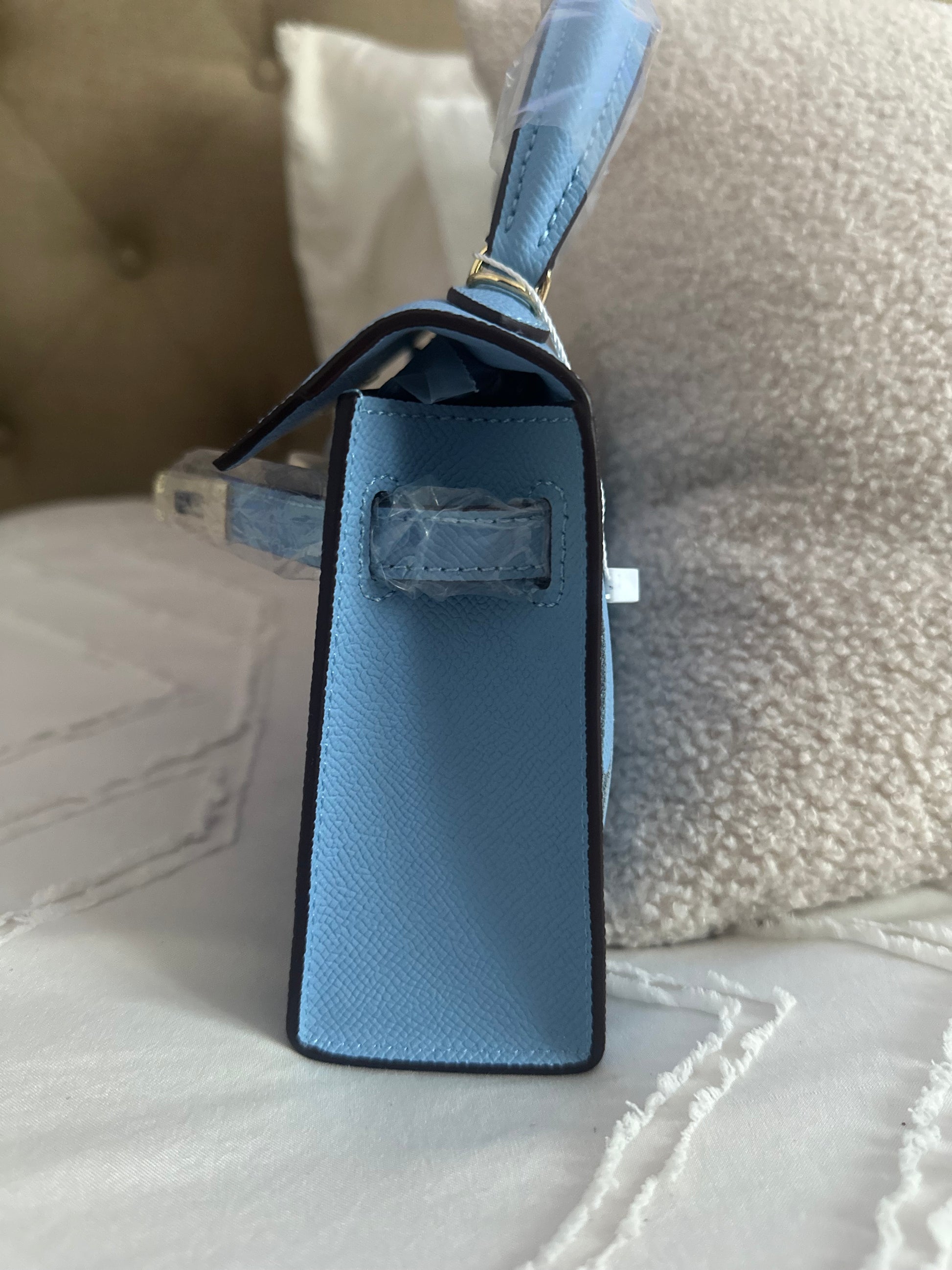 Sac «BLUE» de couleur bleue ciel en cuir véritable.